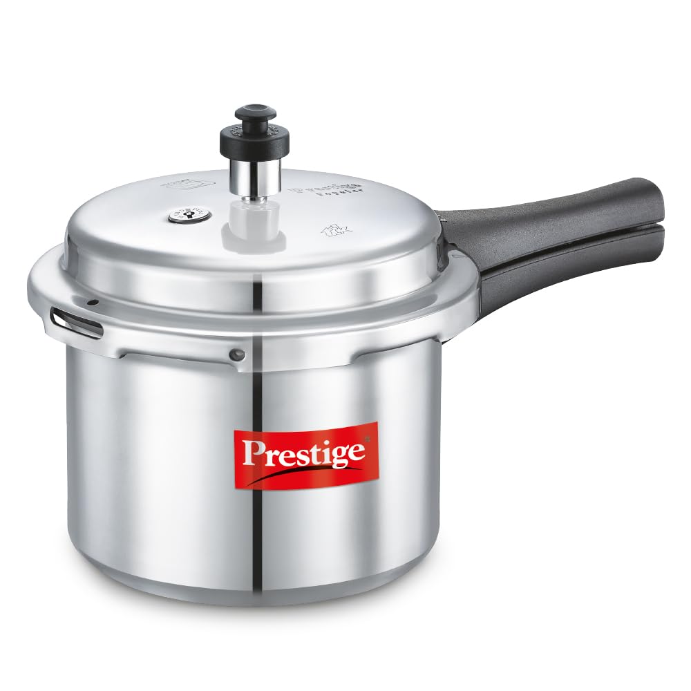 A conventional stovetop pressure cooker for everyday use, suitable for cooking lentils, rice, stews. Durable build with safety valve, easy to use handle and lid mechanism.